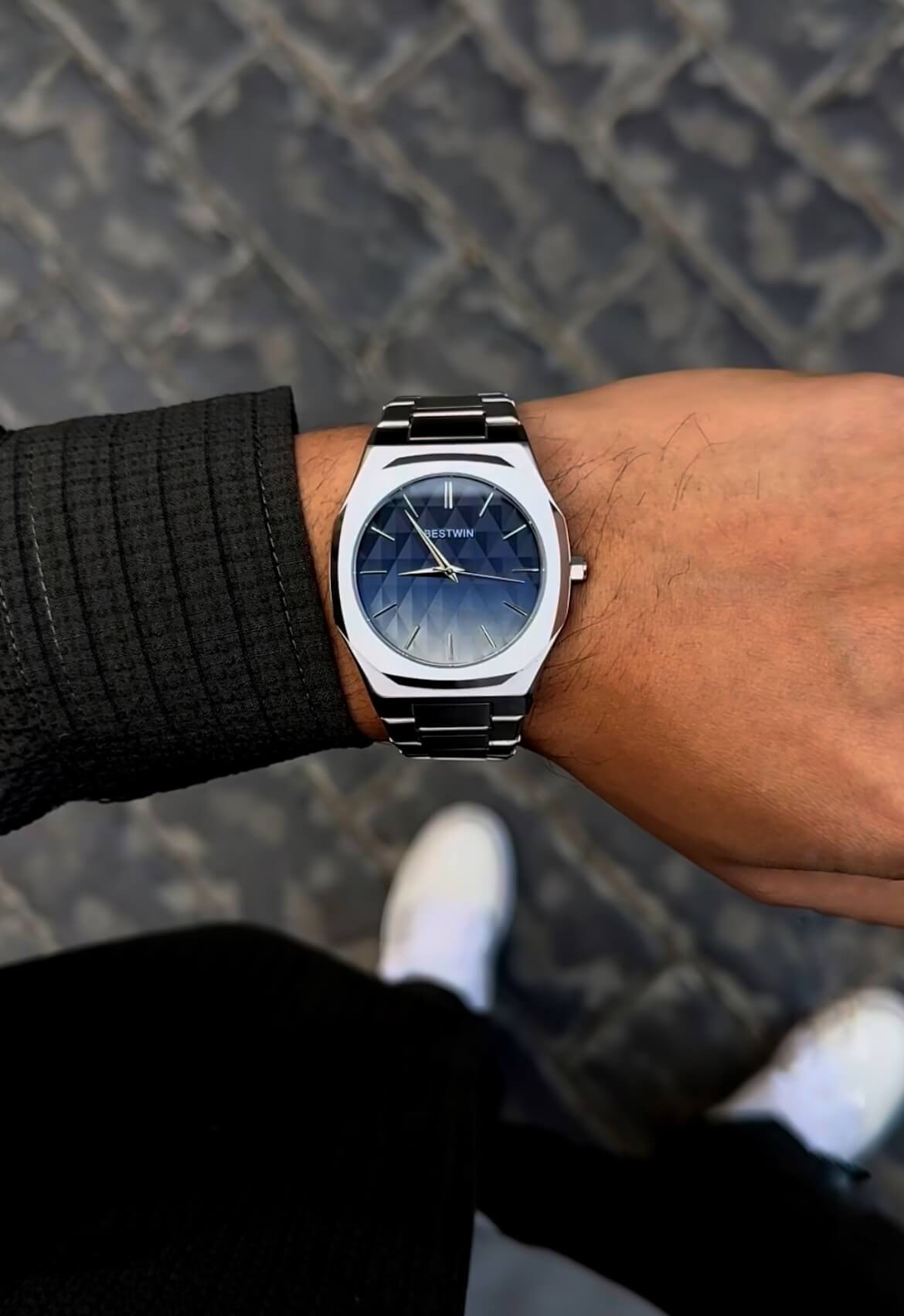 Boja: Srebrna sa plavim brojčanikom