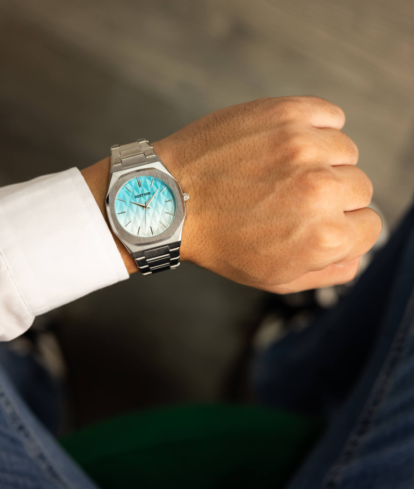 Boja: Srebrna sa tirkizno-plavim kućištem